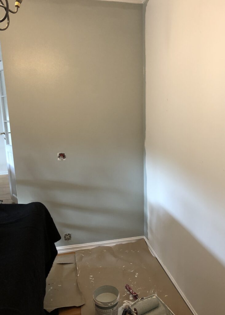 Så deilig å få farge på veggene igjen. Jeg merket det med en gang jeg hadde malt en bit av veggen. Dette var riktig farge. En varme og lunhet begynte å forme seg.